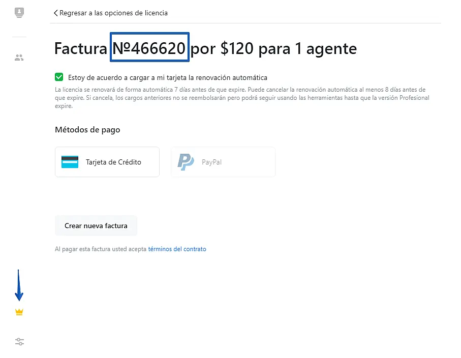 Pegue el número de factura y haga clic en el botón "Pagar"