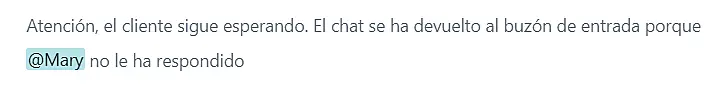 Incluso cuando el chat permanece abierto en la pestaña "Activos" del agente, puede imaginarse una situación en la que un mensaje repetido de un visitante queda sin respuesta. El agente puede no responder por varias razones: se fue para un descanso, estaba ocupado en una llamada telefónica, trabajando en una pregunta compleja de otro cliente, etc.