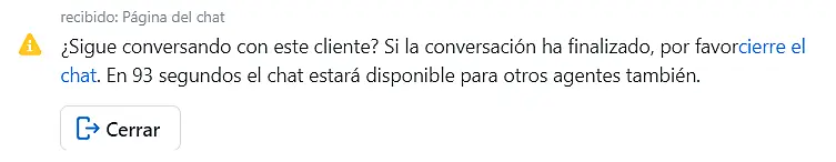 También se puede establecer un temporizador para los chats con los que el agente ya está trabajando - en este caso, cuando el temporizador expira, el sistema avisa al agente para que cierre el chat, o continúe trabajando con el cliente.