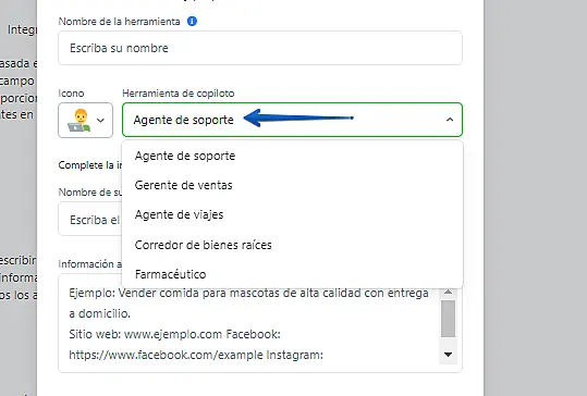 - Habilidad de piloto automático de IA: seleccione de la lista el rol en nombre del cual responderá el asistente