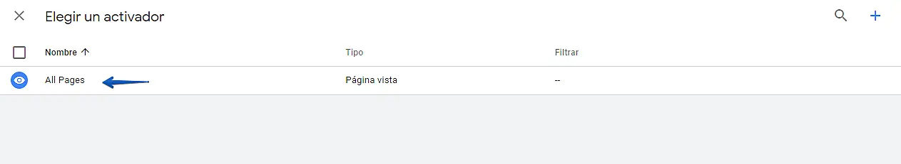 Seleccione el activador "All Pages" (Todas las páginas) y conserver las otras configuraciones por defecto.