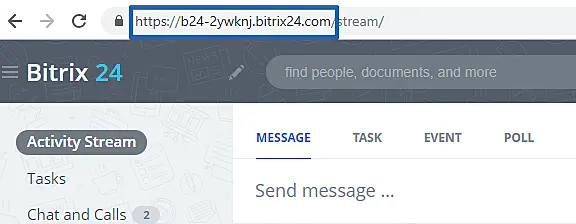 1.Dominio de Bitrix24: Es la dirección de su sistema en Bitrix24, se puede copiar desde la barra de direcciones: