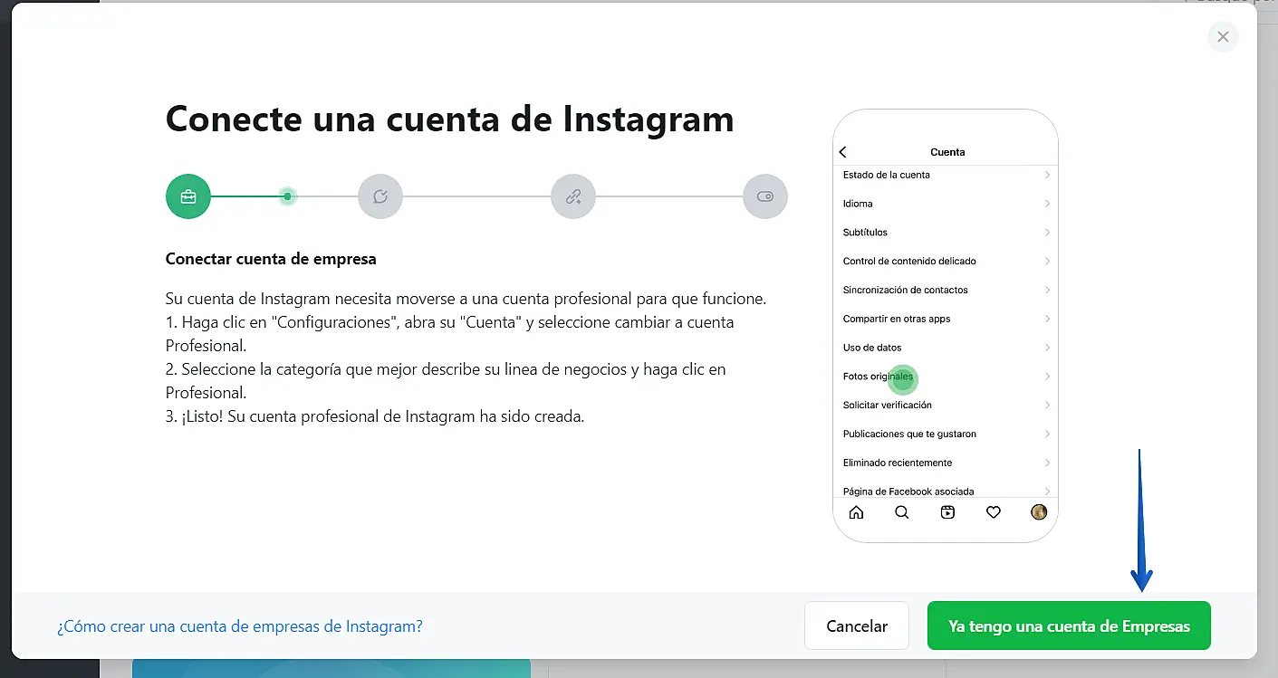• Necesita configurar una cuenta de Instagram para empresas y verificarla.