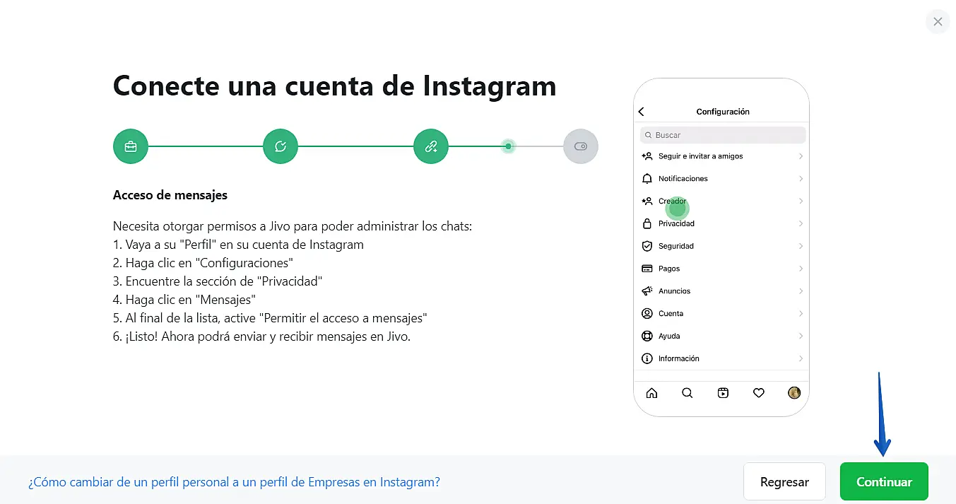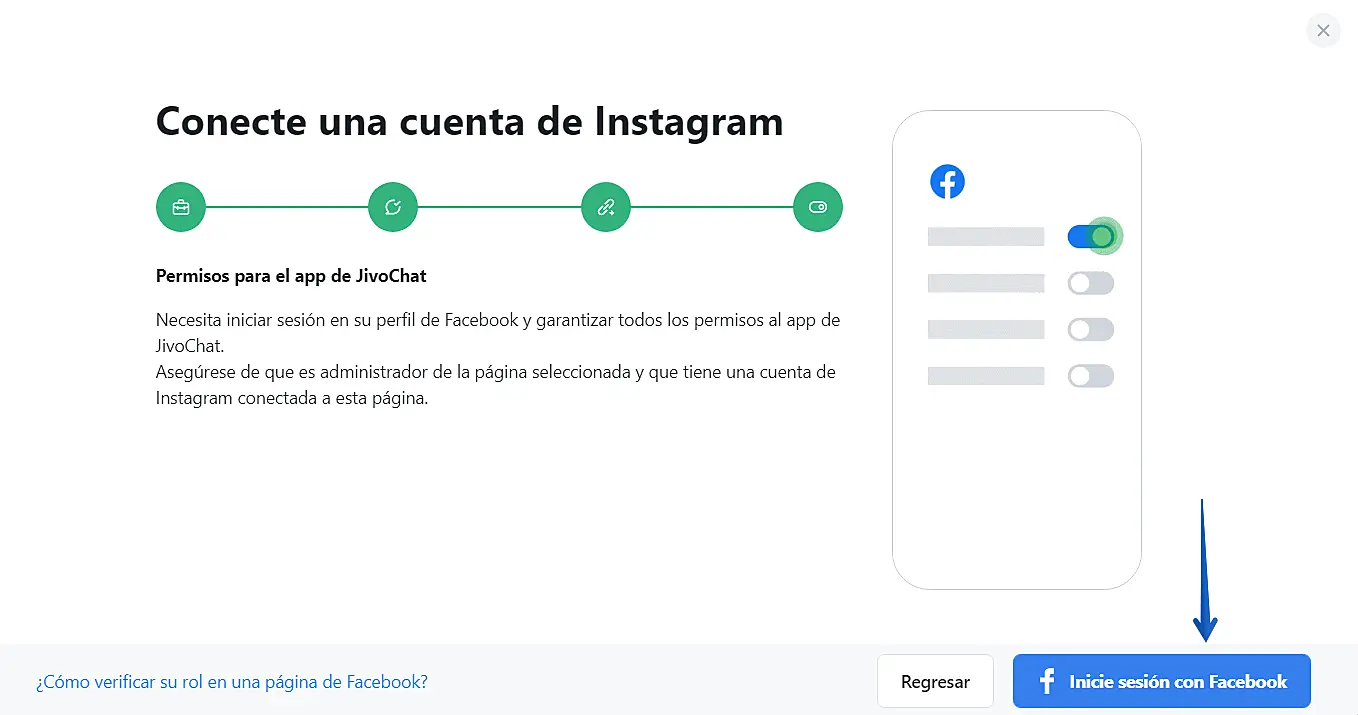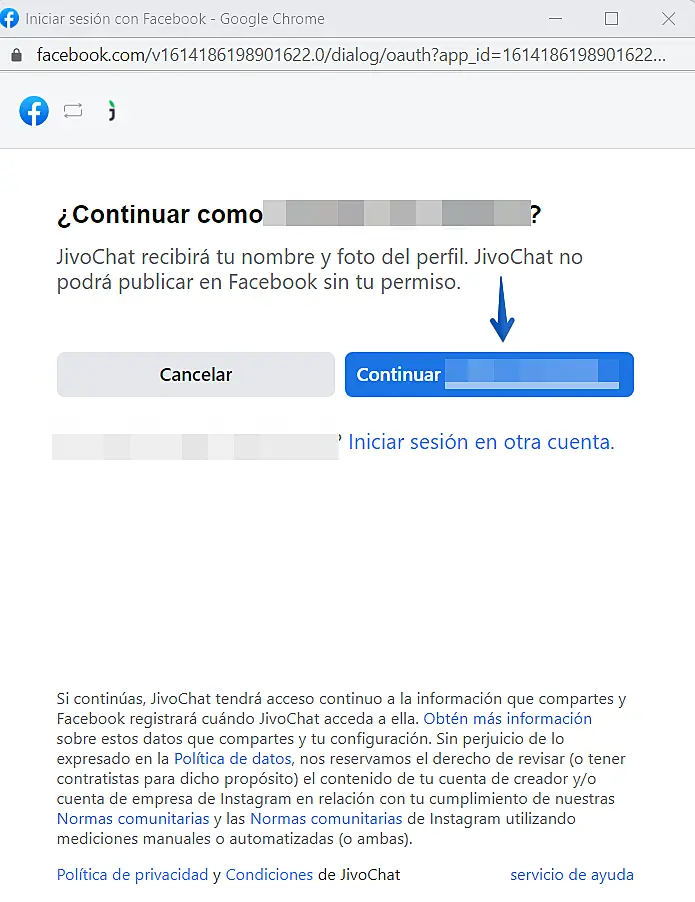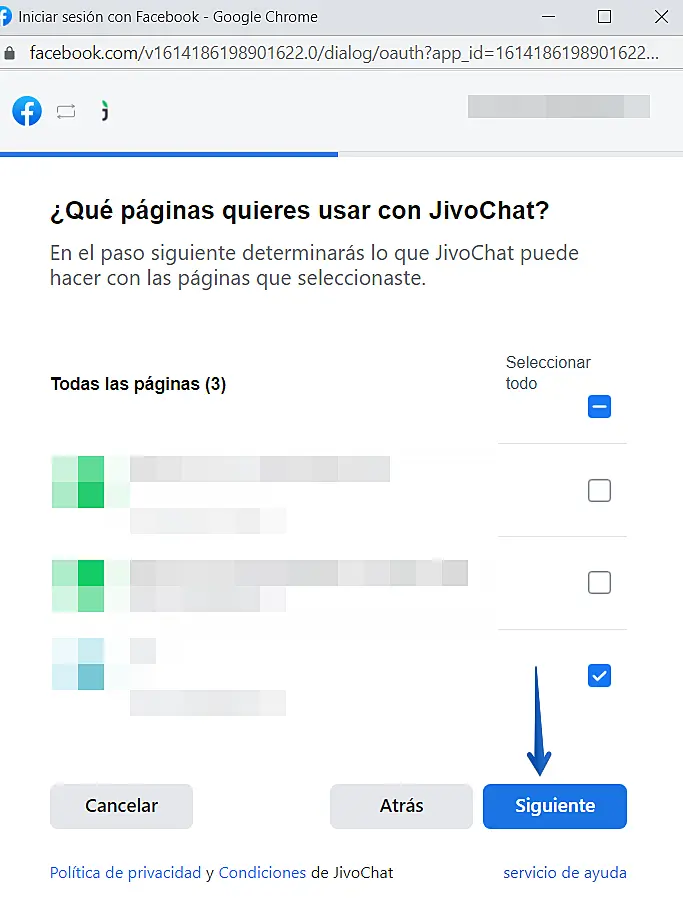 Cuando haya cumplido con todos los requisitos anteriores podrá continuar al paso de conectar en su cuenta de JivoChat.