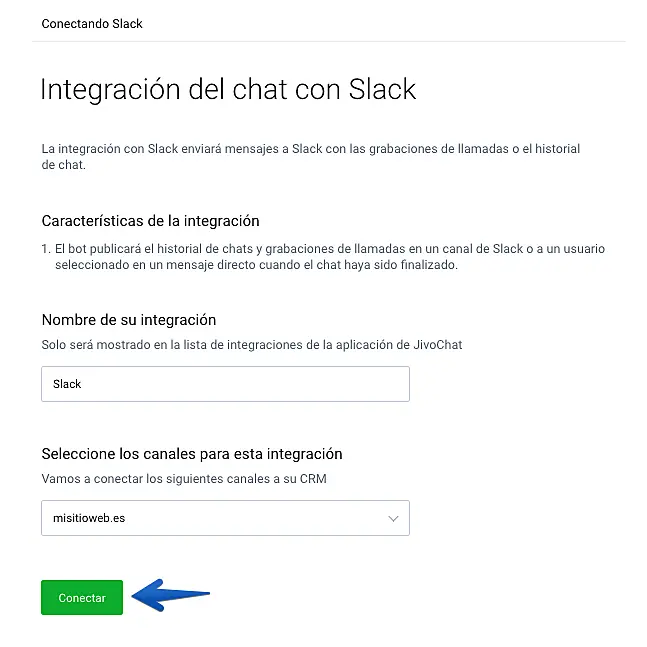 Haga clic en "Conectar" para finalizar la integración.