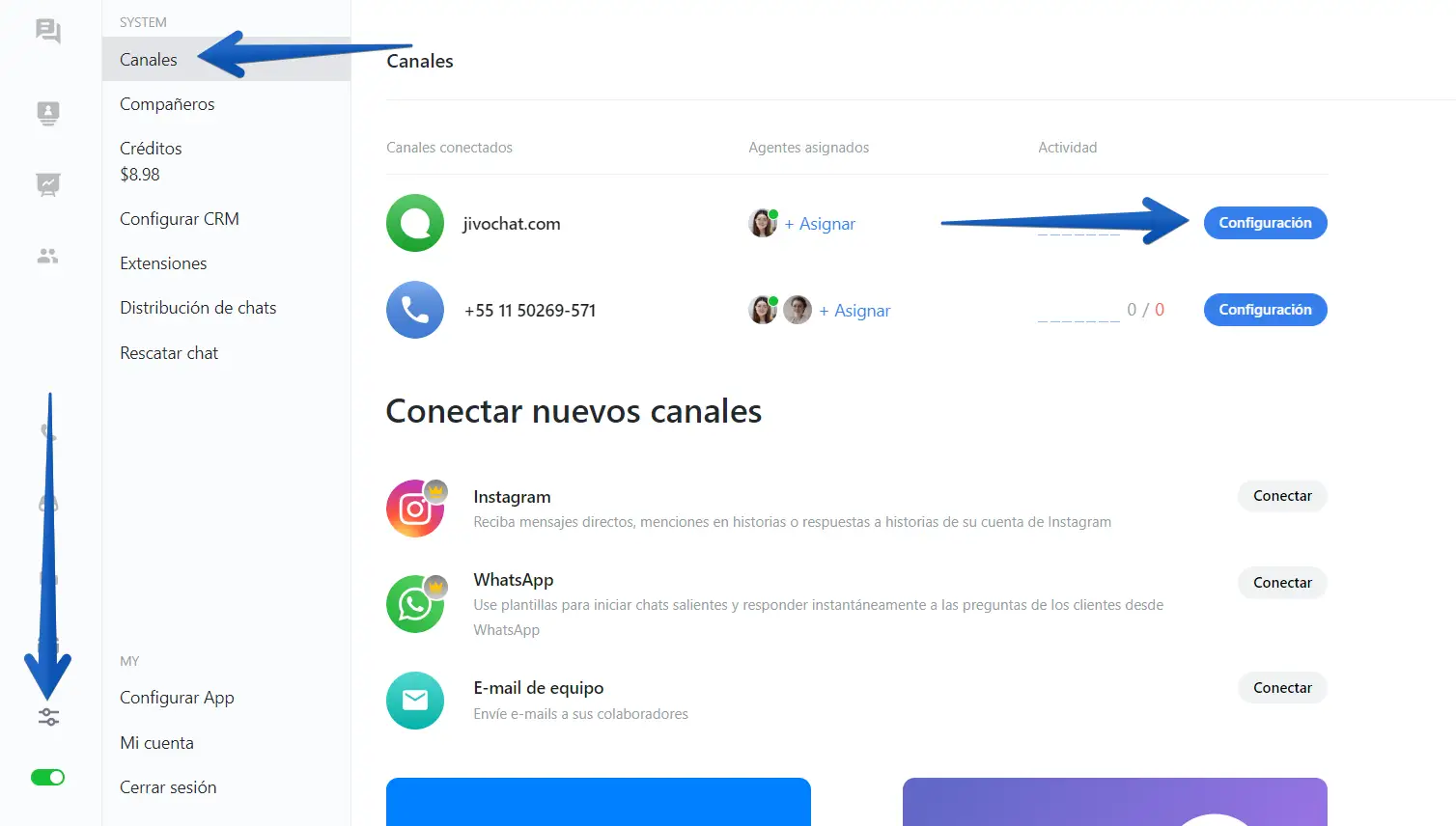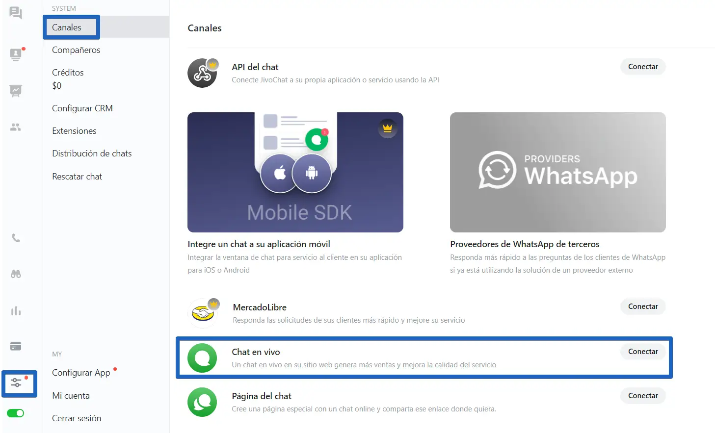 es necesario crear widgets adicionales para este tipo de configuraciones a través del botón "Live Chat". Además, tendrá que pegar