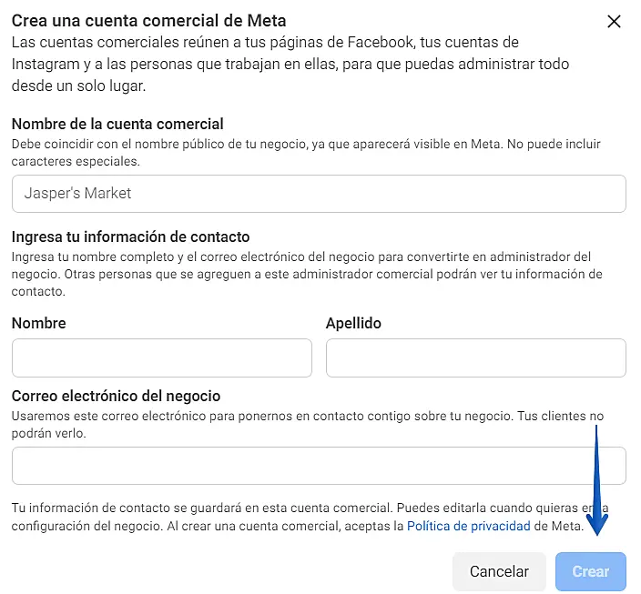 Haga clic aquí para saber cómo crear una cuenta de Meta Business