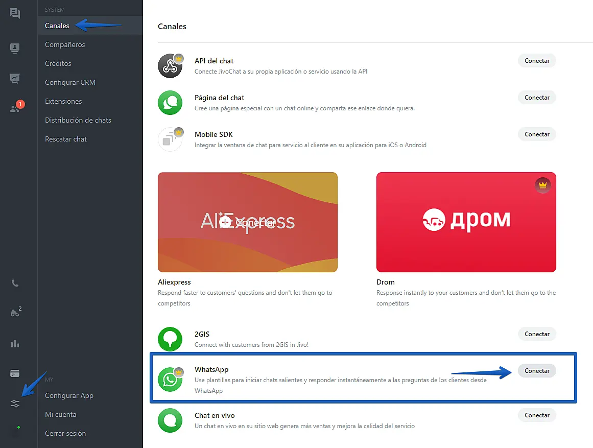 4. Conectando el canal de WhatsApp desde JivoChat
