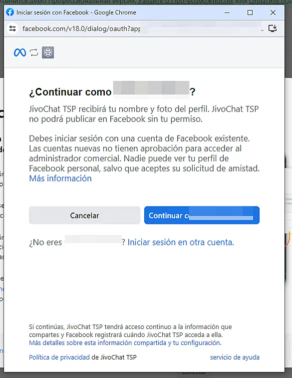 Inicie sesión en Facebbok en la ventana abierta y continúe: