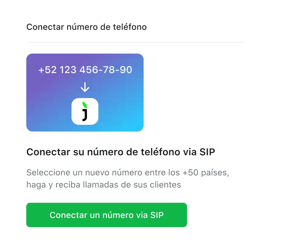 JivoChat tiene todas las funciones de PBX virtual que necesita para su negocio, para que pueda ayudar a sus clientes más rápido y cerrar más tratos. Conecte su número actual a JivoChat o elija uno nuevo para disfrutar de comunicaciones de voz y texto en una única aplicación.